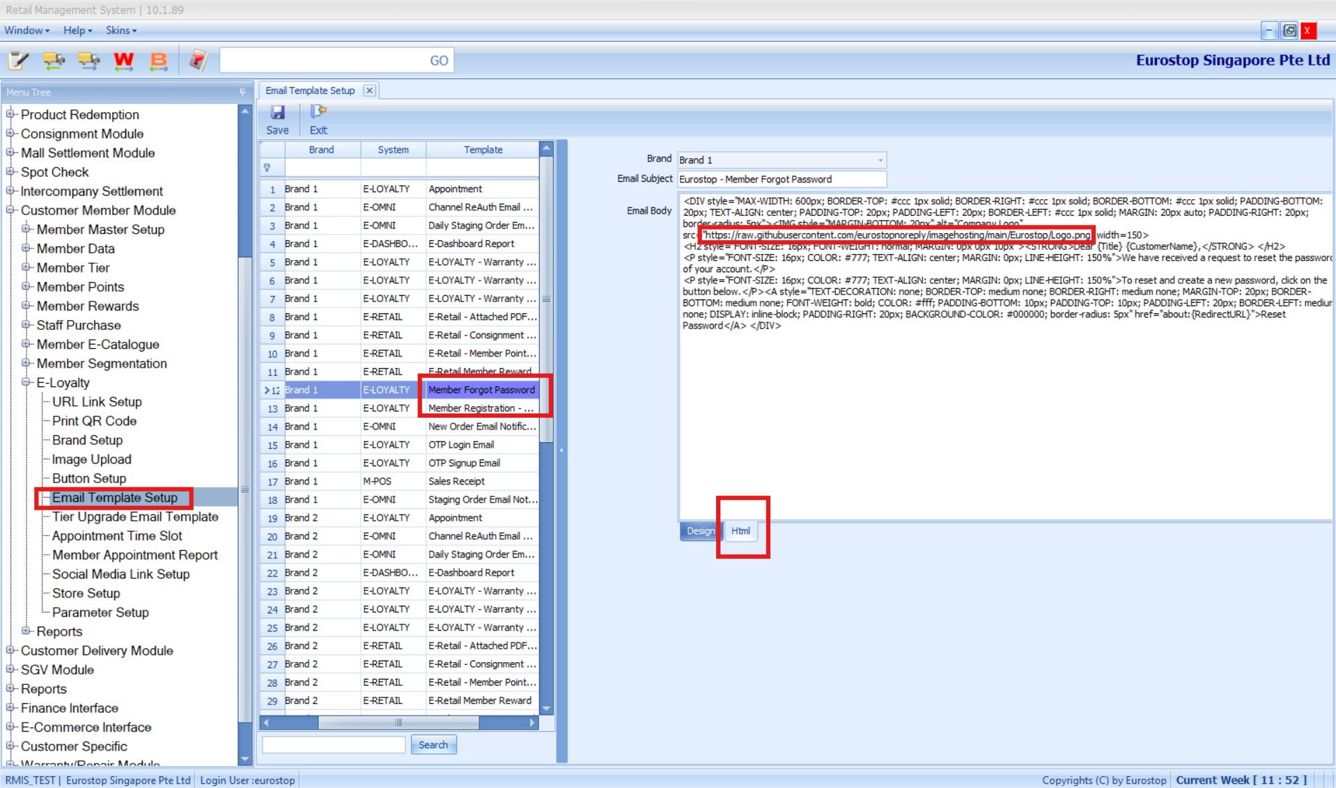 Navigate to Customer Member Module > Eloyalty > Email Template Setup.